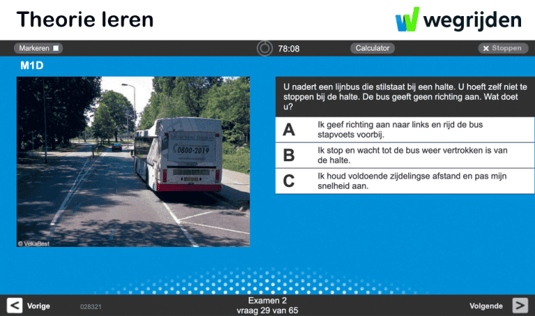 Zeker weten dat je slaagt voor je bus theorie-examens RVM1-D(1), VM2-D en VM3-D? Duik dan in onze levensechte online examens! Het oefenen met realistische vragen geeft je een voorsprong die onbetaalbaar is. Onze uitgebreide vragenbank, dat bol staat van actuele examenvragen, zorgt ervoor dat je exact weet wat je kunt verwachten op het echte examen. Dankzij onze online proefexamens bouw je niet alleen kennis op, maar ook het zelfvertrouwen dat je nodig hebt om te slagen. Iedere keer dat je oefent, kom je een stap dichterbij je doel. Na elk proefexamen krijg je direct feedback, zodat je leert van eventuele fouten. Stel je eens voor: de zekerheid en het zelfvertrouwen dat je voelt wanneer je de examenzaal binnenstapt, gewapend met alle kennis en voorbereiding. Start nu met oefenen en maak van je theorie-examen een gegarandeerd succes!