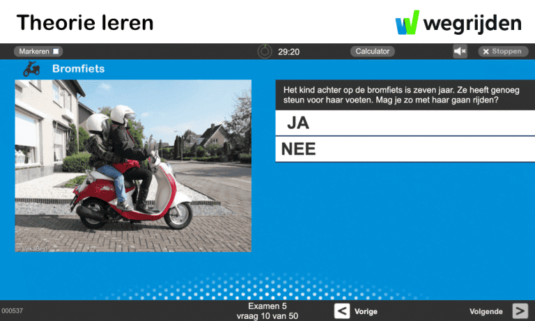 Ons advies: schaf een examenpakket aan en begin thuis met het oefenen van theorie-examens voor de scooter.