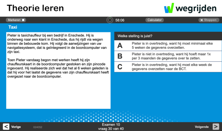 ✓ Online taxi theorie-examens, opgesteld volgens de CBR/CCV-methodiek